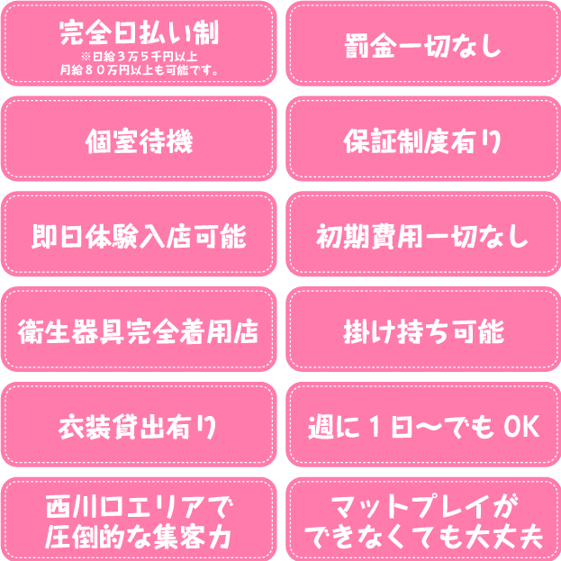 - 見学のみOK 体験入店OK 店外面接OK 面接交通費支給 友達と面接可 写メ面接○ 採用率50% 採用率70% 採用率90% 自由出勤 週1~2日 週3~4日 週5日以上 土日のみOK 1日2時間 1日5時間 短期OK 1週間以内 1ヶ月以内 3ヶ月以内 6ヶ月以内 バック率50%以上 バック率60%以上 バック率70%以上 バック率80%以上 保証制度あり 完全日払い ボーナスあり 指名料バック 送りあり 駅から徒歩5分以内 掛け持ちOK 講習なし マニュアル講習 女性店長 イケメン従業員 生理休暇 託児所紹介可能 制服貸与 個室待機 アリバイ対策対応可能 即日勤務OK 未経験者歓迎 経験者歓迎 人妻・主婦歓迎 大学生歓迎 ドMな方 ドSな方 巨乳 タトゥーOK 20代前半 20代後半 30代前半 30代後半