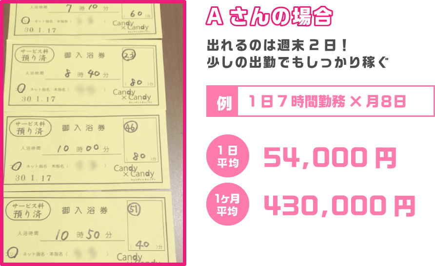 面接後、体験入店の方でも簡単に5万円前後の収入が見込めます