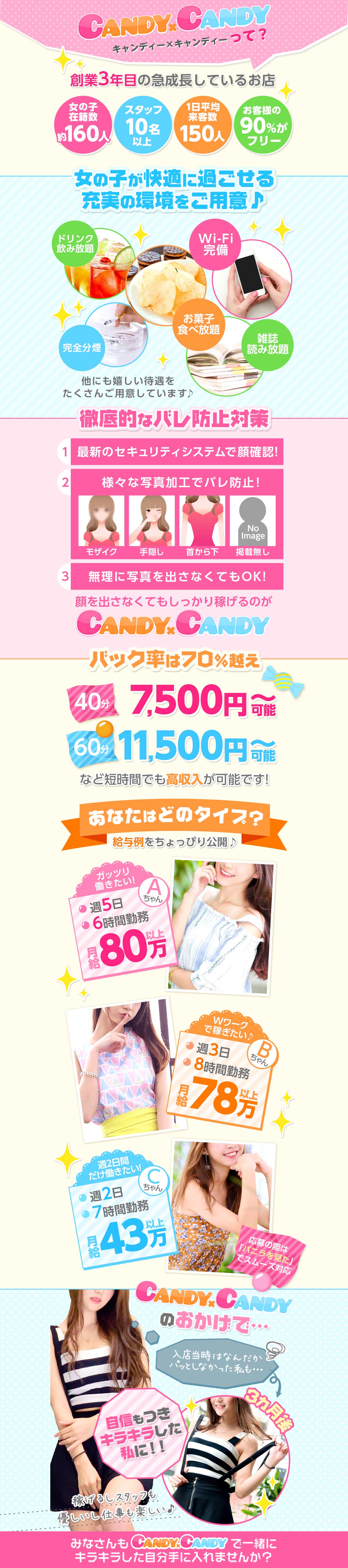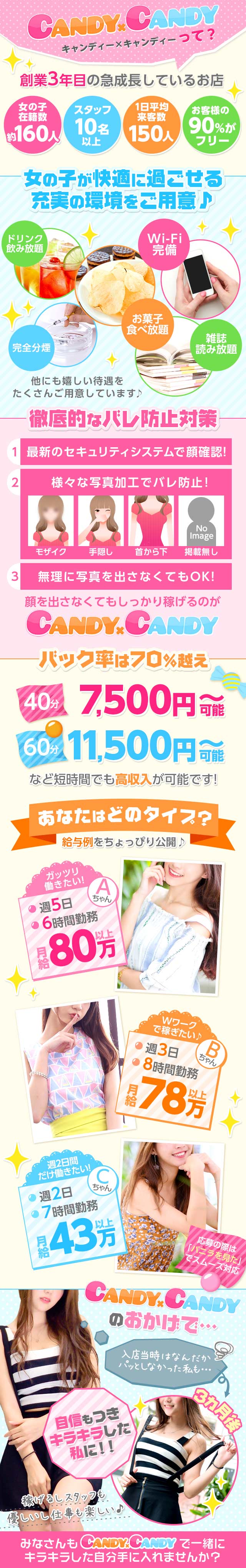candy×candyは、未経験者大歓迎です♪経験者も大歓迎です♪主婦・母子家庭でも大歓迎です♪